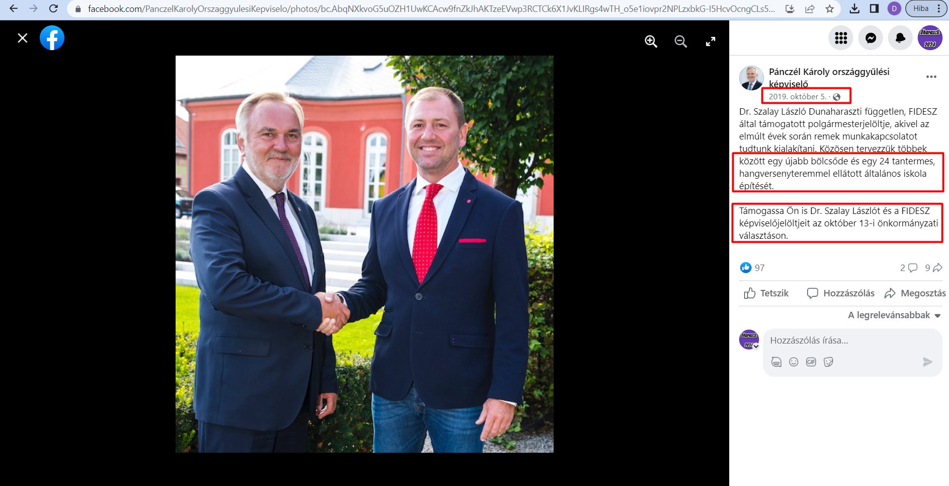 2019-től már biztosan a FIDESZ-t képviselte ahogy az alábbi képekből is kítűnik. Függetlennek hazudja magát azoknak akik nem követik a FIDESZ-es oldalakat,